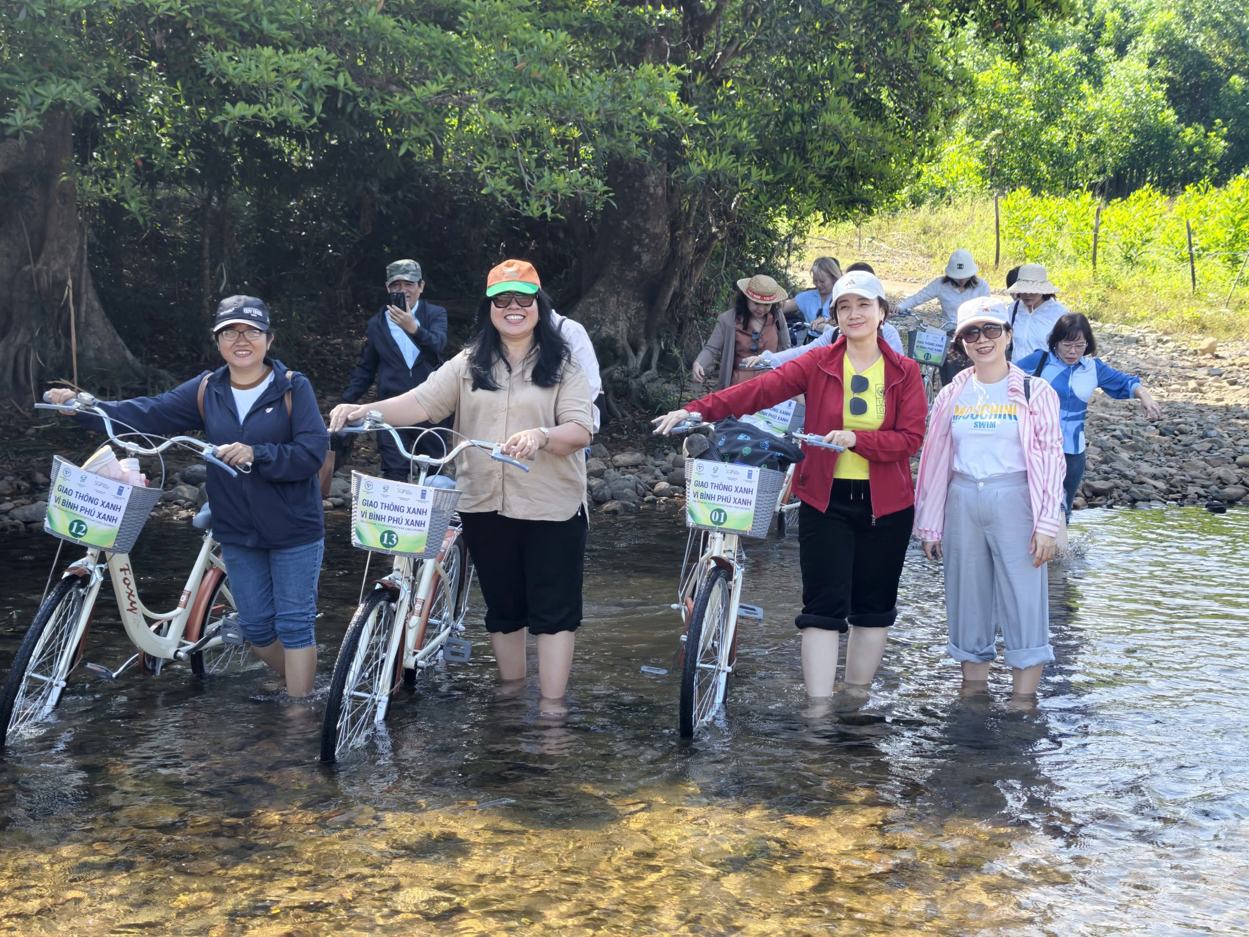 Trong hành trình trải nghiệm, các giảng viên đã tham gia nhiều hoạt động như đạp xe qua các tuyến làng, lội suối, tham quan mô hình sản xuất và tìm hiểu thực tế mô hình trồng dược liệu dưới tán rừng. Những trải nghiệm này không chỉ mang lại góc nhìn thực tiễn về mối liên kết giữa kinh tế – môi trường – văn hóa, mà còn cho thấy vai trò trung tâm của cộng đồng địa phương trong phát triển du lịch bền vững.
